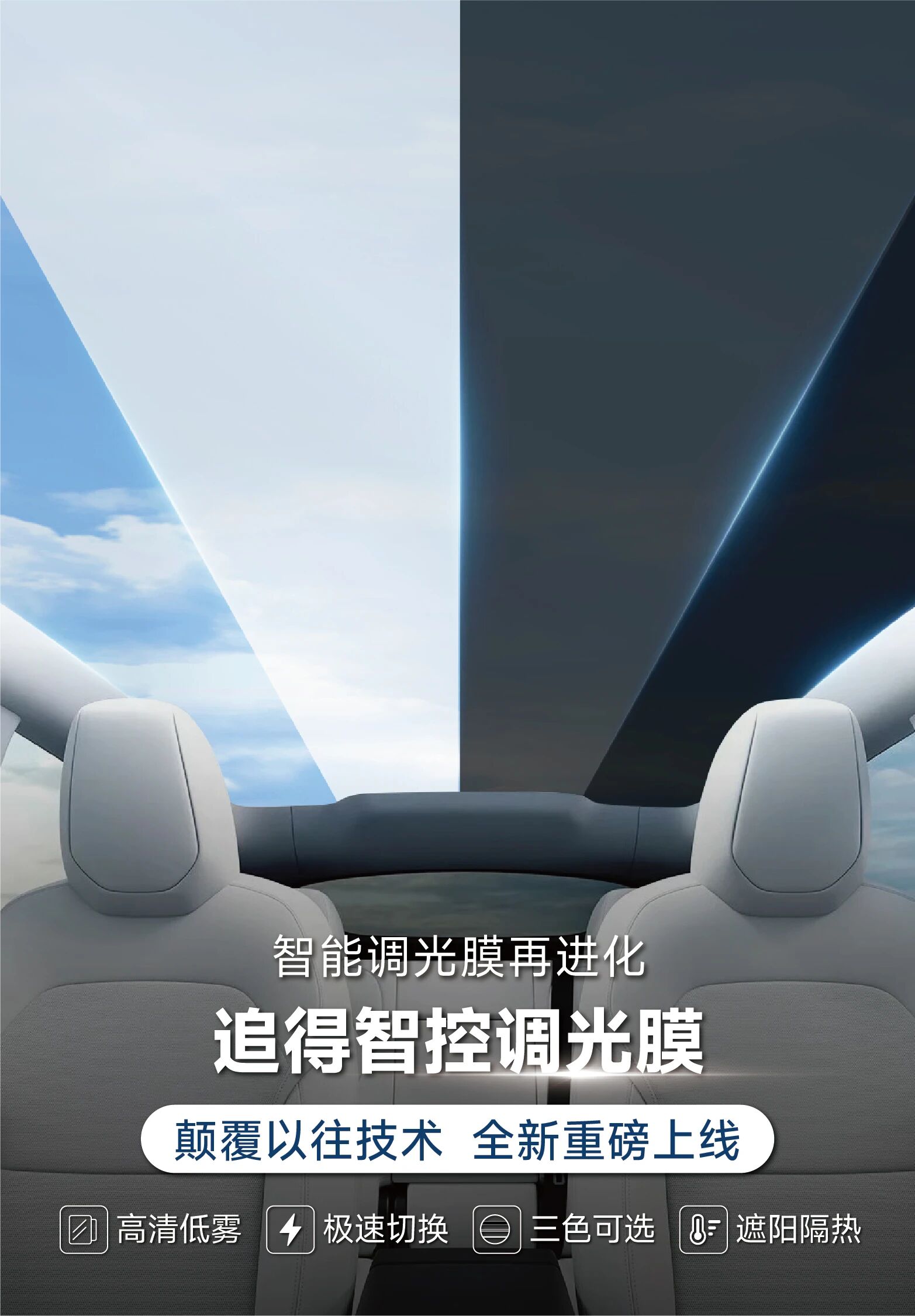 面对行业痛点,追得深耕调光技术多年,专注以膜材形式攻克响应速度、透明度、成本和安全性四大难题,推动调光技术实现革命性突破,为汽车天窗带来更灵敏、更稳定、更安全的调光体验。