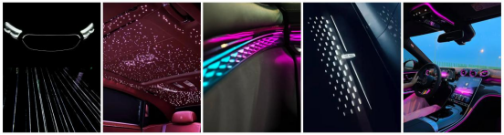 (1.奔驰数字流星雨大灯2.劳斯莱斯星空顶3.冰晶氛围灯4.迎宾灯 5.奔驰氛围灯)