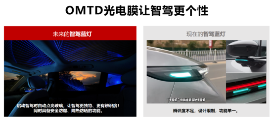 2018年,追得向新型光电智能膜的创新研发与生产转型。历时七年的创新研发,以先进的“光刻+晶体灌注+特殊光源+芯片算法”技术,实现了玻璃的极致美学与动感效果,白天透明隐形,夜晚动感闪耀,开创了OMTD光电智能膜的新品类与新市场。2022年追得OMTD光电膜成功合作广汽影豹车型前装,并成为宝马、问界、比亚迪的主机厂合作商,OMTD光电显示产品正日益形成市场规模。